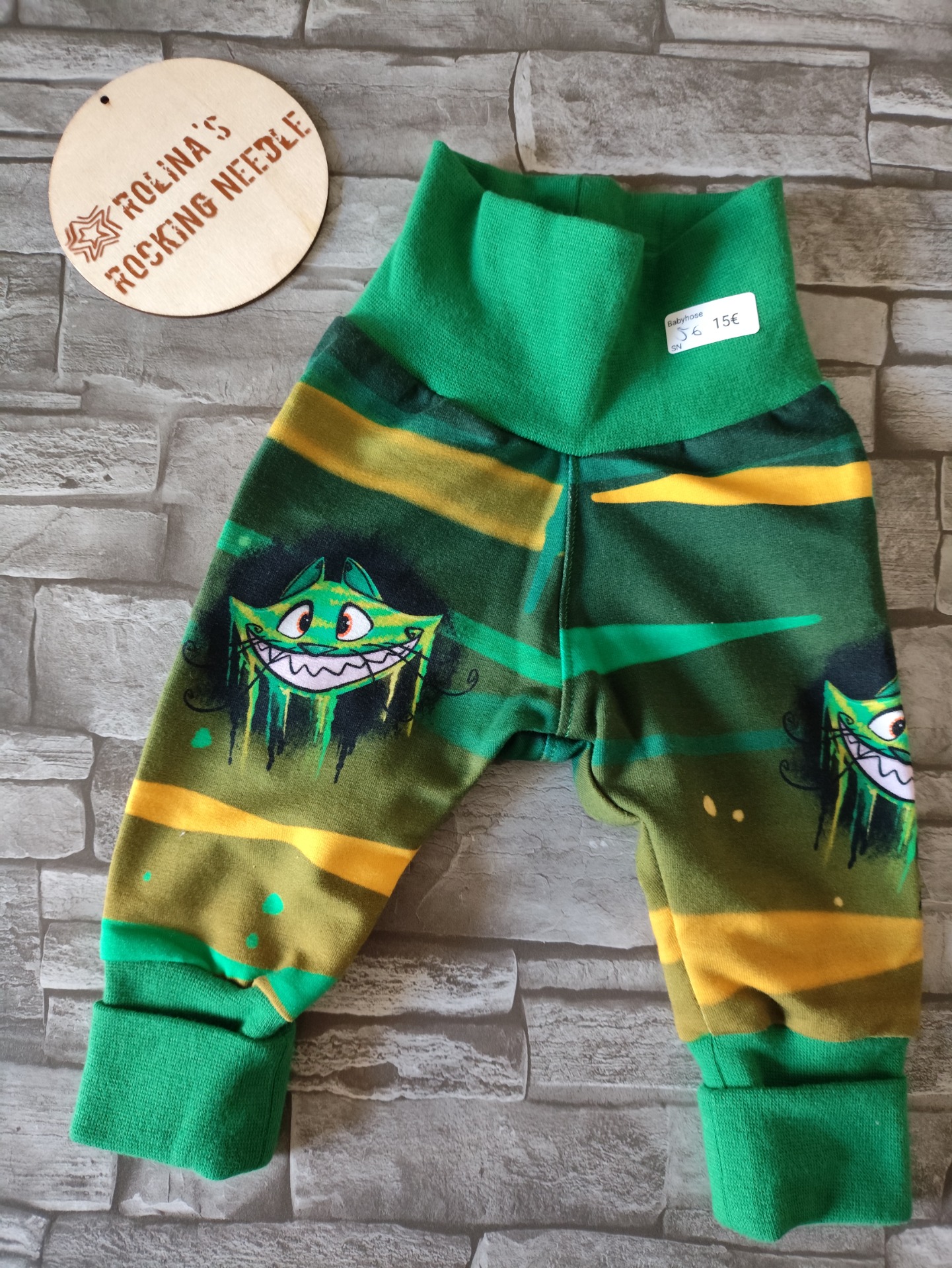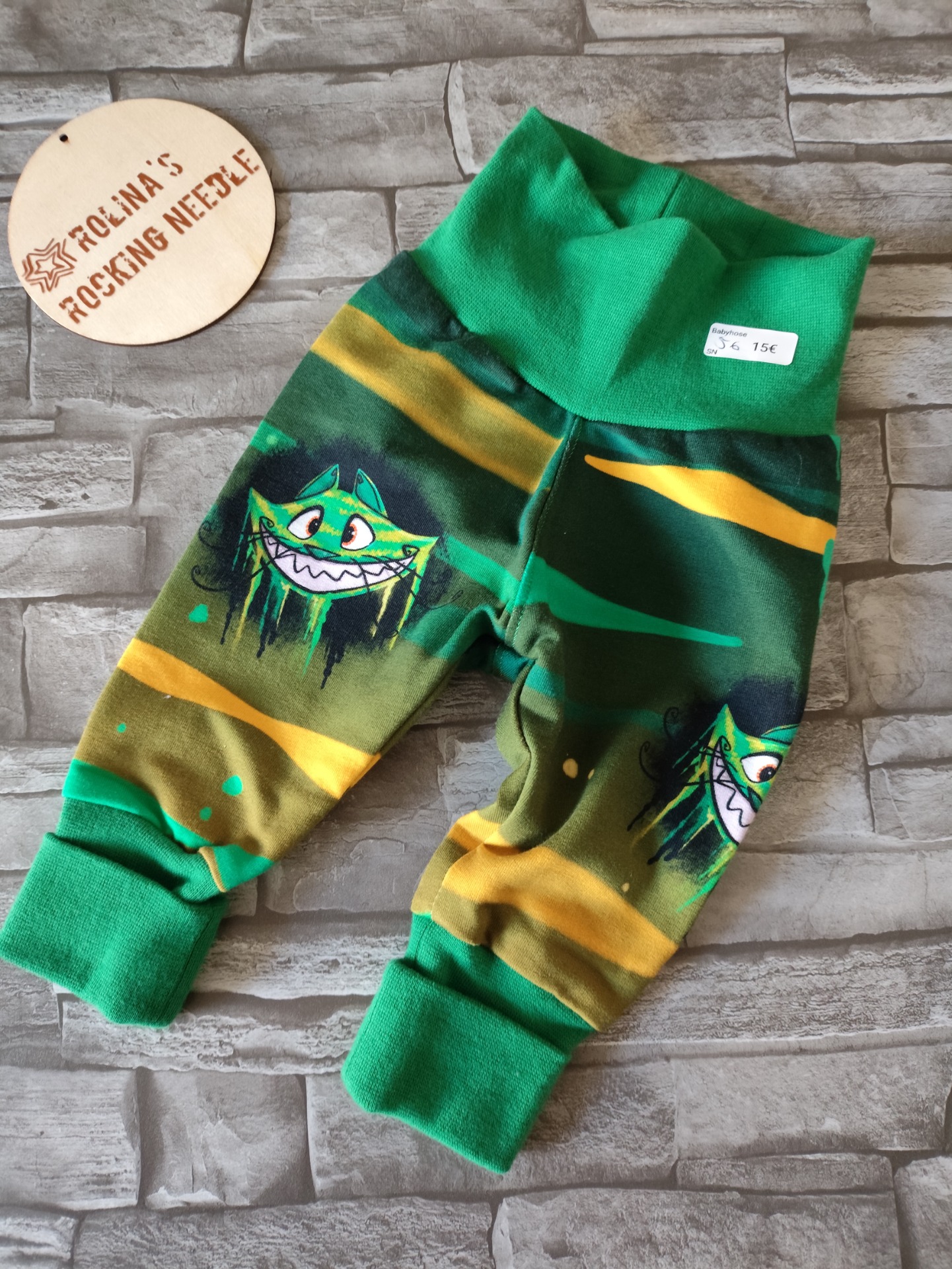 Babyhose Grinsende Katze grün 56