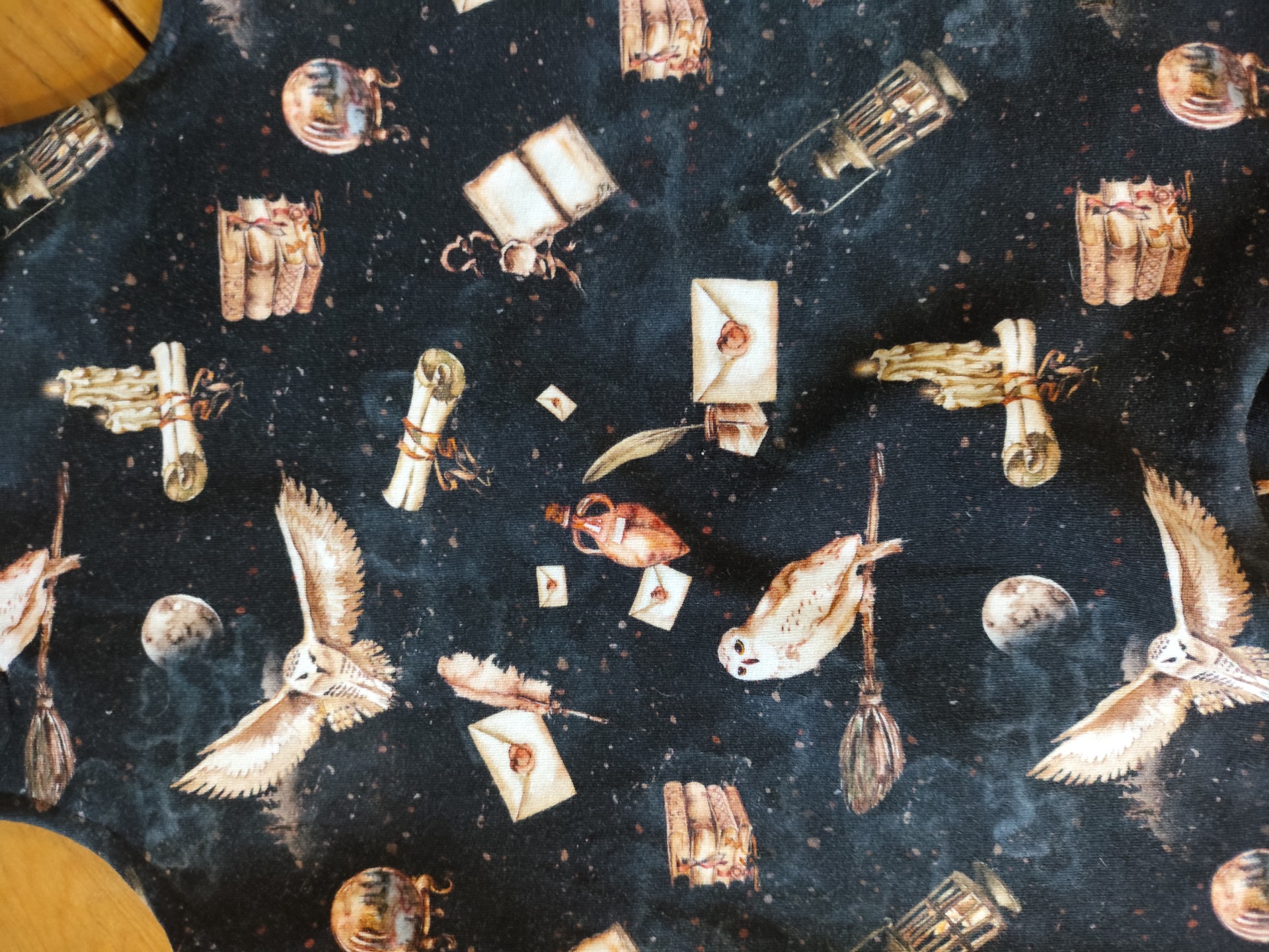 Magische Latzhose aus Elastischem French Terry, mit niedlichen Eulen, für alle die noch immer auf ihren Brief warten. Extra lange Beinbündchen und Elastische Träger lassen die Hose mitwachsen.